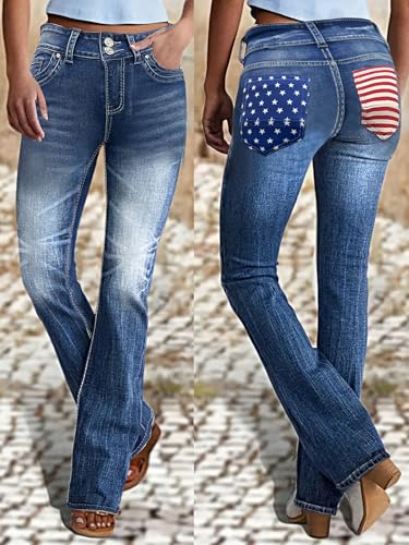 cffvdiz Bootcut Jeans for Women Mid-Rise Back Pockets American Flag Print Flare Denim Pants 6