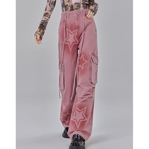 More information about Y2K Fashion Straight High Waisted Wide Leg Jeans Casual Drawstring Gradual Stars Tie-Dye Denim Pants