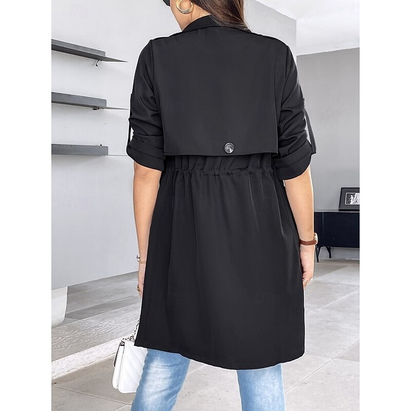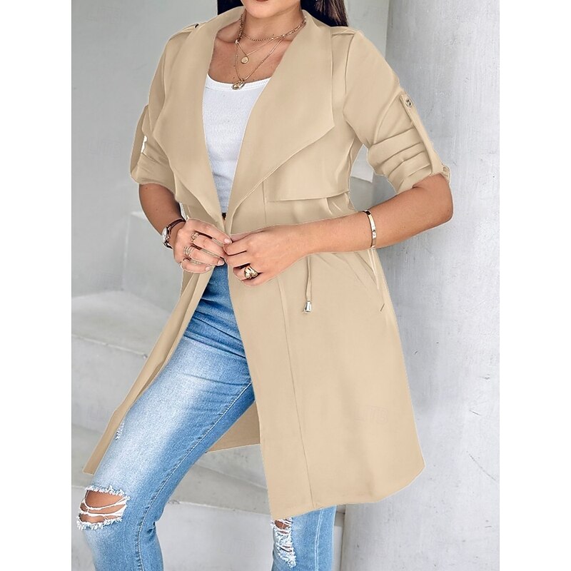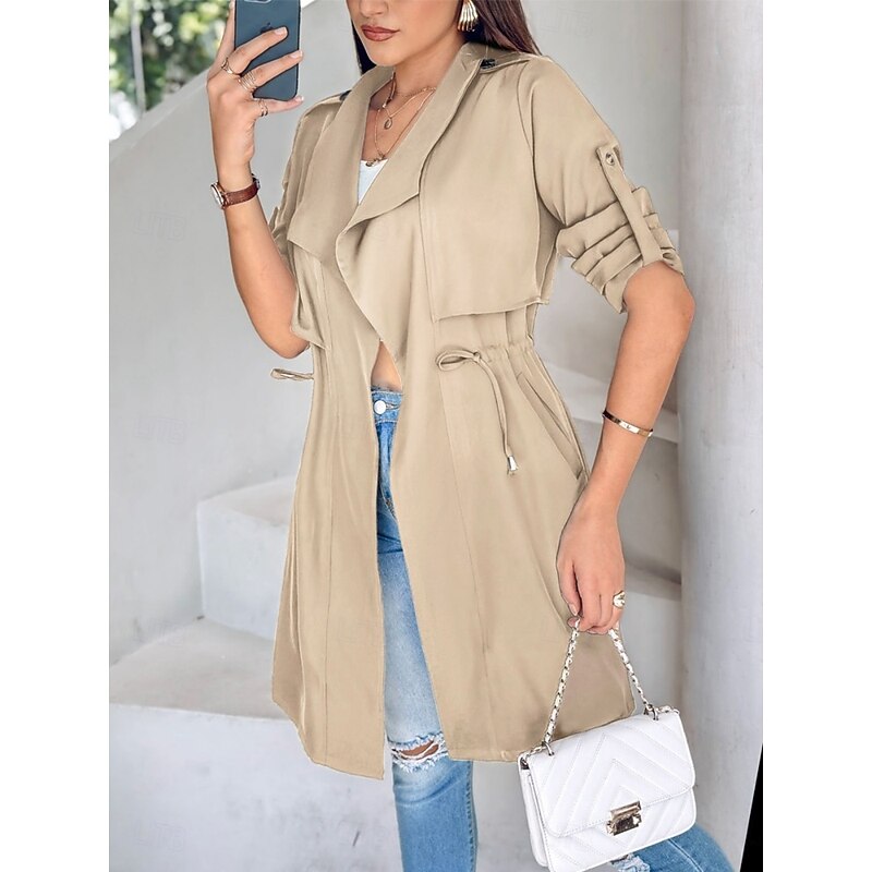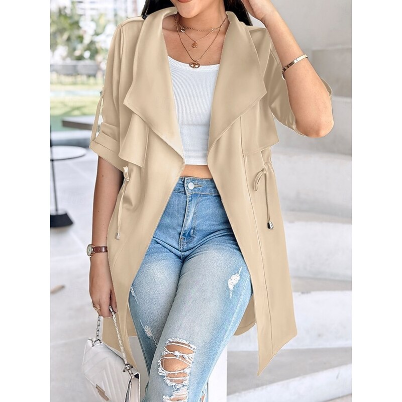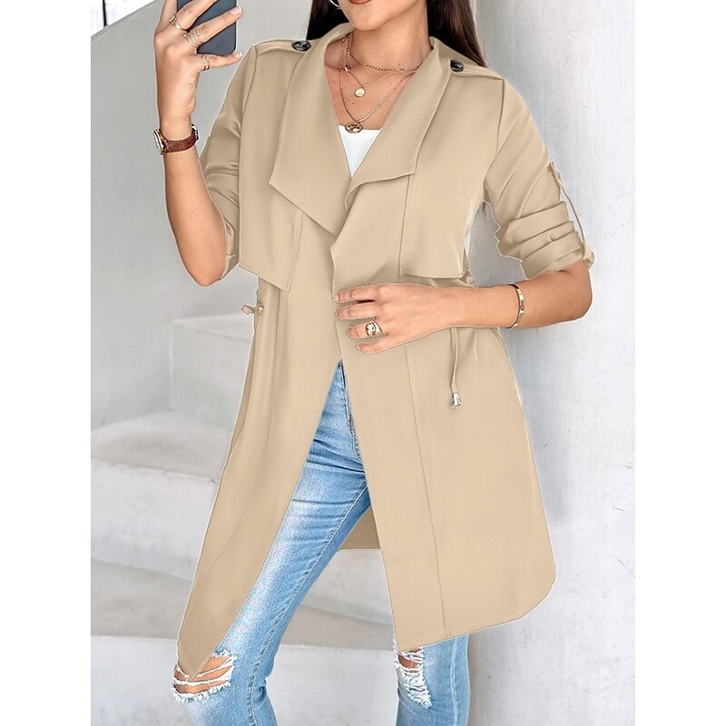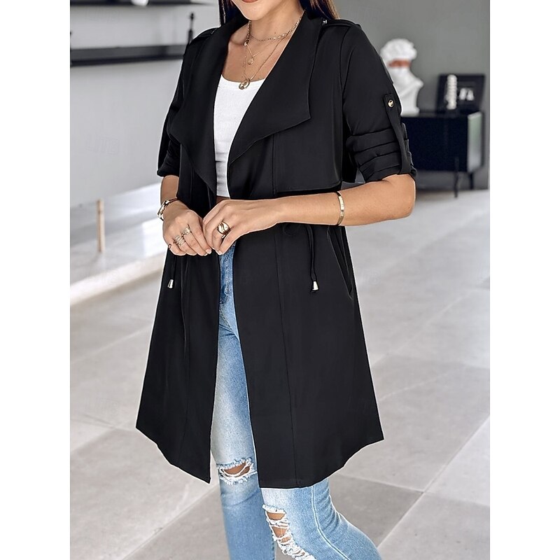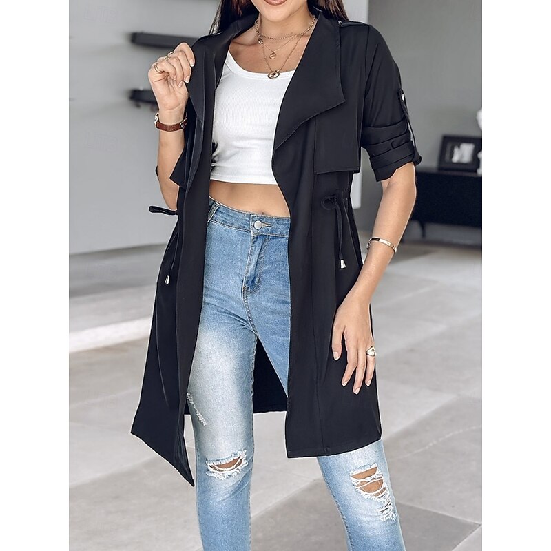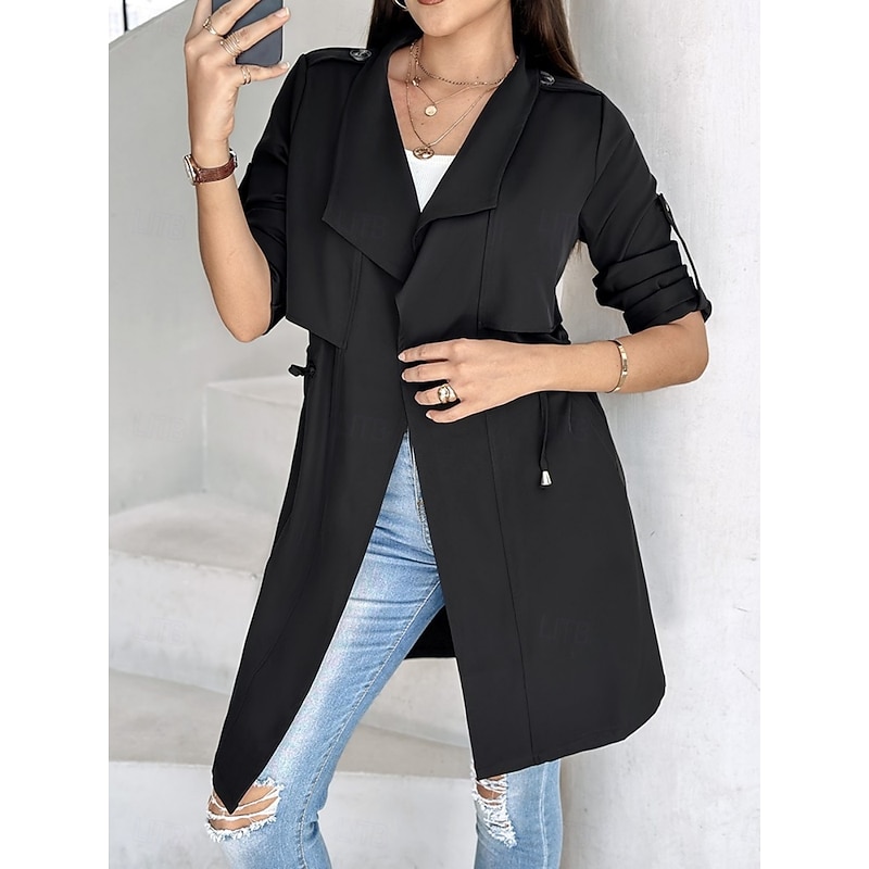 $38.99 - Women's Casual Jacket Comfortable Breathable Pocket Fashion Casual Plain Vacation Street Casual Daily Wear Open Front Regular Turndown Regular Fit Long Sleeve Outerwear Black Khaki Army Green Summer 2025. Shop for cheap Trench Coats online? Buy at lightinthebox.com on sale today!