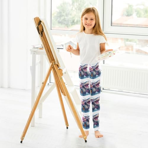 Monster Truck with The Head of an Angry Shark Girls Leggings Kids Yoga Pants Dance Active Tights 4T 5