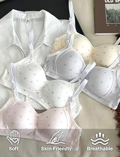 • 【Fun First Bra】Cute enough for teens but practical for everyday, this bra comes in pretty colors like sky blue and pink with sweet floral and star prints. It's the ideal step up from training bras, helping girls feel confident as they grow