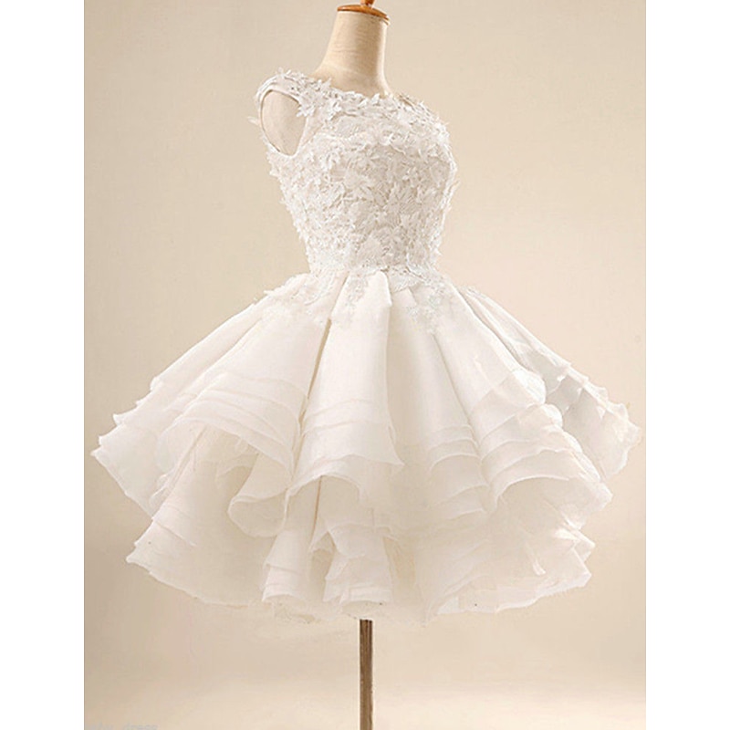 More information about Ball Gown Cocktail Dresses 1950s Dress Valentine's Day Homecoming Short / Mini Sleeveless Jewel Neck Organza with Appliques Tiered Shouder Flower