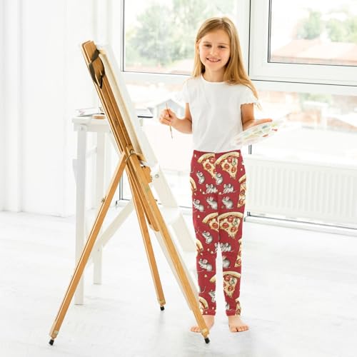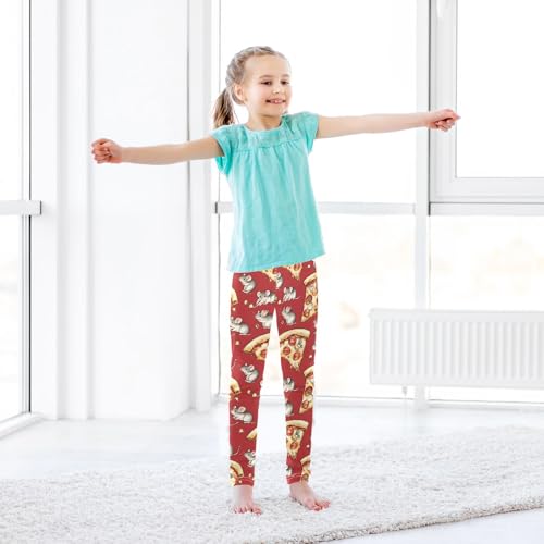 Cartoon Mice and Pizza Girls Leggings Ultra Soft Compression Yoga Gym Pants for Kids 4-10T 5
