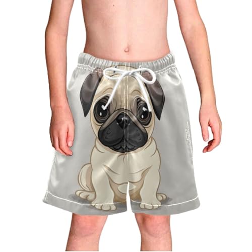 Pigsaly Boys' Swim Board Shorts Cartoon Pug Dog Brown Puppy Animal Boy's Swim Trunks Kids Swimwear M 1