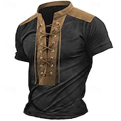 More information about Men's Henley Shirt Tee Top Color Block Drawing Henley Outdoor Casual Short Sleeve Button Clothing Apparel Fashion Designer Comfortable