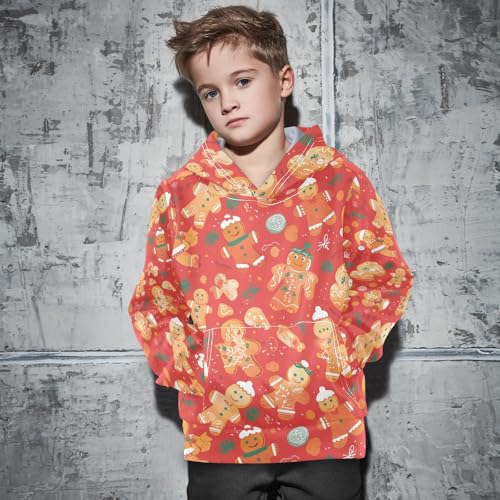 HOT ! KLL Gingerbread Cookies Boys And Girls Sweatshirt Casual Pullover Top Streetwear with Kangaroo Pocket