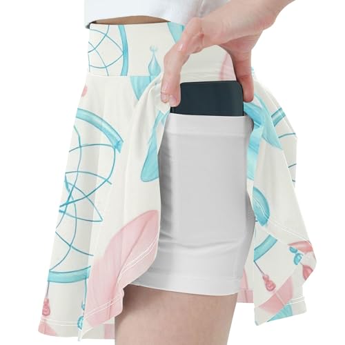 Joisal Pastel Pink Dreamcatchers Feathers Skirts with Shorts Flowy Athletic Shorts for Girls Skorts Pleated 4t 7
