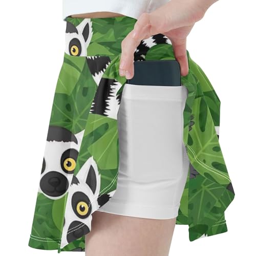 Joisal Toddler Tennis Skirts Cartoon Lemur Leaves Green Athletic Shorts for Girls Skorts Print Flowy Skirt 4t 4