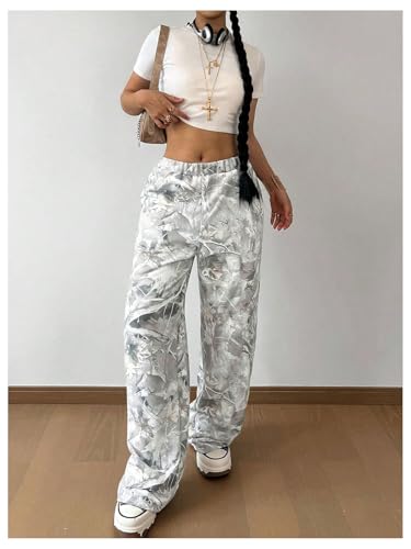 HOT ! Girl's Camo Graphic Branch Sweatpants Wide Leg Elastic Waist Trousers Pants with Pockets Streetwear