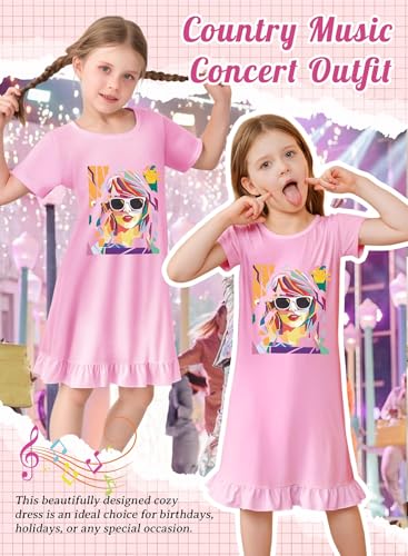 • 👗 Fans' Favorite Design: This girl's pink home dress is perfect for young music fans, blending modern, artistic patterns with a simple short sleeve style. Featuring a colorful pop art girl graphic or the bold "A LOT GOING ON AT THE MOMENT" lettering, both designs radiate vibrant energy and personality. The delicate ruffled hem adds a playful touch, making the dress both cute and dynamic.