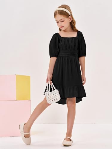 Girls Summer Dresses Square Neck Lantern Sleeve Tie Backless Ruffle A-Line Party Mini Dress 6