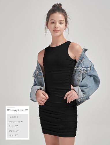 EXARUS Girls Bodycon Ruched Teen Tight Dresses Ribbed Short Pencil Sleeveless Fitted Tank Casual Summer Mini Dress 4