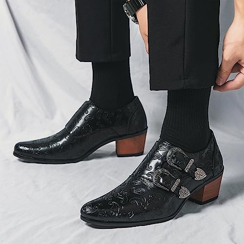 Optigard Men's Double Monk Strap Chelsea Boots,Low Top Pointed Toe Business Oxford Boots Retro Fashion Ballroom Party Western Cowboy Ankle Boots Leather Slip On Formal Loafers 6