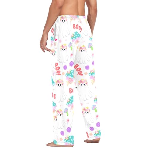 Spirits with Flower Pattern Men's Cotton Pajama Pants with Pockets and Drawstring Comfortable and Stylish,S 6