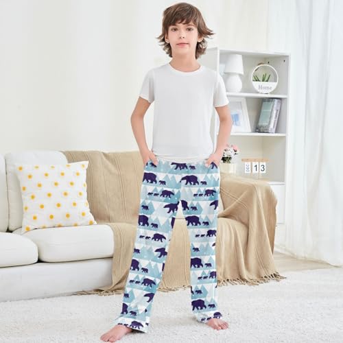 Boy's Pants Winter Polar Bear Mother Child Jogger Pants Elastic Waist Long Bottoms Trousers with Pockets 6-14 Years 3