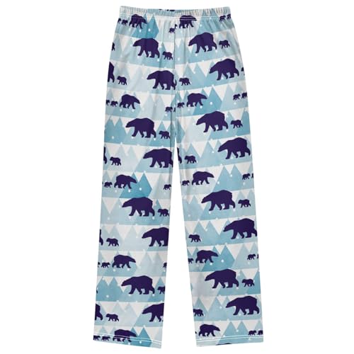 Boy's Pants Winter Polar Bear Mother Child Jogger Pants Elastic Waist Long Bottoms Trousers with Pockets 6-14 Years 6