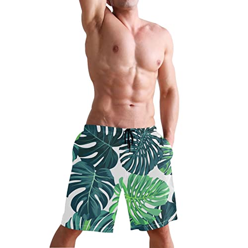 HOT ! Green Monstera Palm Leaves Men's Swim Trunks Tropical Leaf Summer Beach Shorts Quick Dry Bathing Suits with Mesh Lining XXL