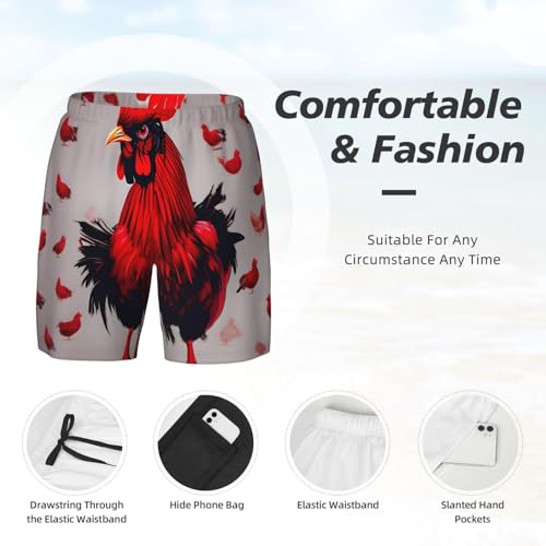 Red Chicken Print Men Stylish Functionality Swim Trunks Breathable Beach Shorts Surfing Gym Fishing 5
