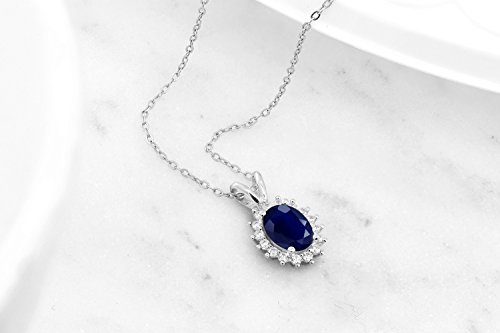 More information about Gem Stone King 925 Sterling Silver Oval Gemstone Birthstone Pendant Necklace | Oval 8X6MM | Halo Pendant Necklace for Women | With 18 Inch Chain