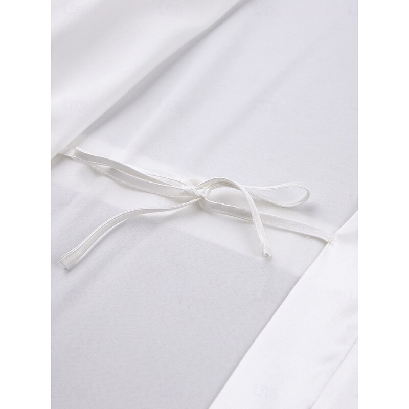 Women's Robe Casual Comfort Pure Color Feather Home Daily Long Sleeve V Neck White Summer Spring Fall Regular Fit 8