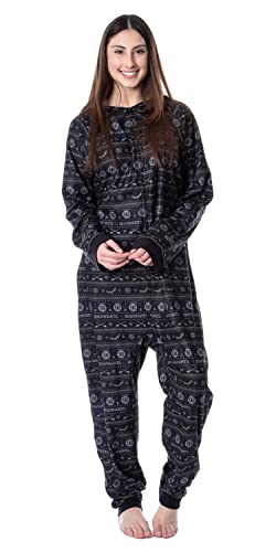 • CLASSIC CHARACTER DESIGN - This magical Harry Potter pajama union suit features a fun sweater style Hogwarts print across the entire union suit. It has snowflakes, 'Hogwarts,' brooms, Platform 9 3/4, and more, all in a faux stitch style! It's for curling up in and watching all your favorite Harry Potter movies or reading the fantastic books set in the Wizarding World!