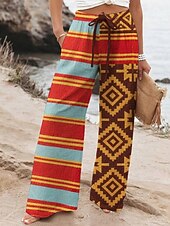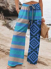 More information about Women's Wide Leg Pants Trousers Retro Vintage Long High Waist Geometic Elastic Waist Printing High Cut Breathability Soft Micro-elastic Vacation Street Daily Wear Blue Purple Fuchsia Orange Spring