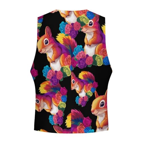 Animal Squirrel Flowers Men's Suit Vests Business Formal Dress Vest V-Neck Waistcoat for Wedding Casual 3