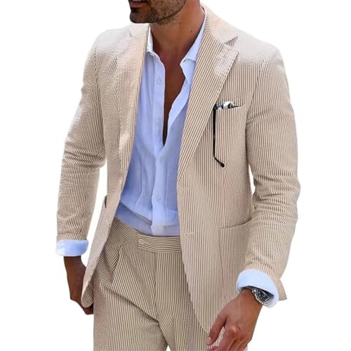 Men Suits 2 Pieces Seersucker Notched Lapel Wedding Party Suit Jacket Pants 2 Button Slim Fit Suits 2