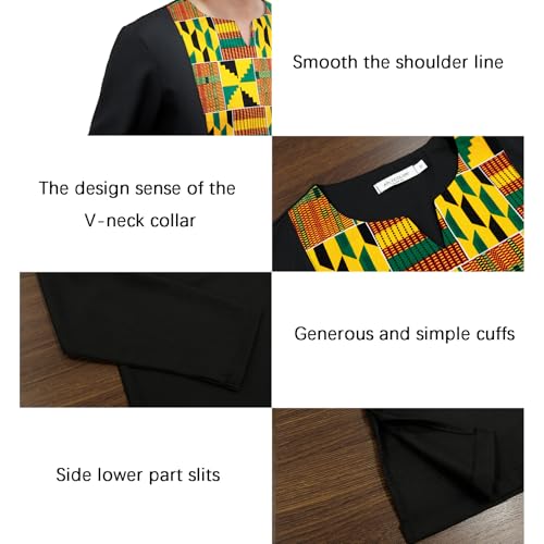 • Quality Material:African dashiki for men is made of breathable materials—polyester blend+100% cotton waxed cloth fabrics,it delivers comfortable wear, showcasing attractive African-inspired designs and patterns.