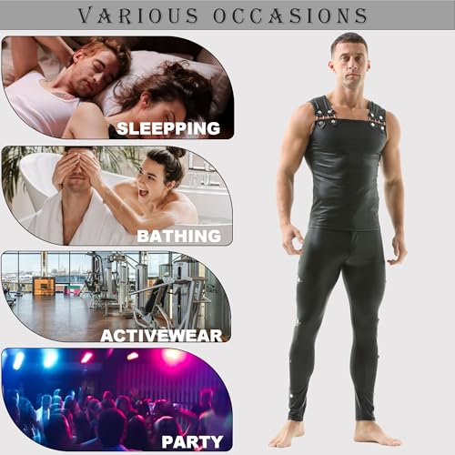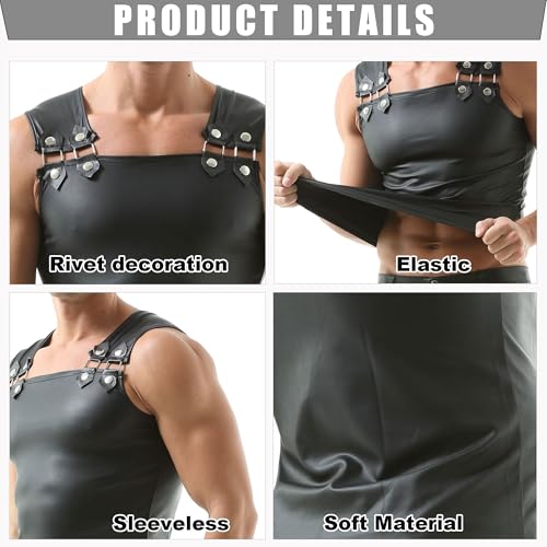 • 【 Faux Leather 】This men's tank top shirt design with faux leather material, high quality fabric, soft and comfortabe to wear.