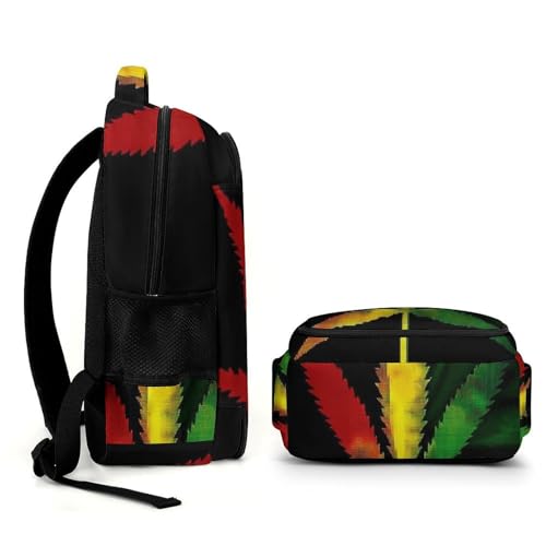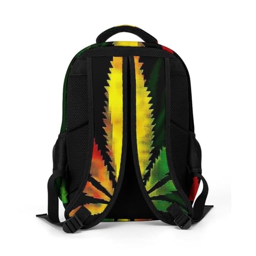 Unisex Backpack with Side Pockets, Women Men Durable Spacious Backpack, Rasta Flag Trippy Weed Leaf Comfy Shoulder Bag for Travel, Daily Commuting 6