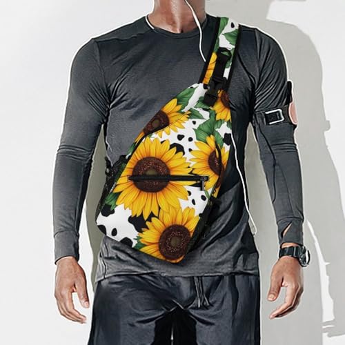 HOT ! Men's Fashion Chest Bag, Travel Shoulder Pack, Small Cross Body Sling Bag 80s Vintage Sunflower Cow Print