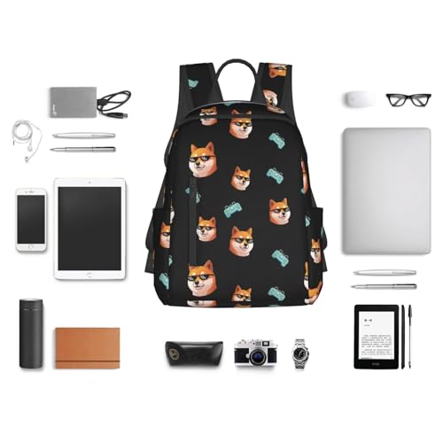 HOT ! College Backpack, Travel, or Work Bookbag, Spacious and Versatile for Daily Use, Funny Shiba Inu Thug Dog Life Sunglasses Daypack Rucksack