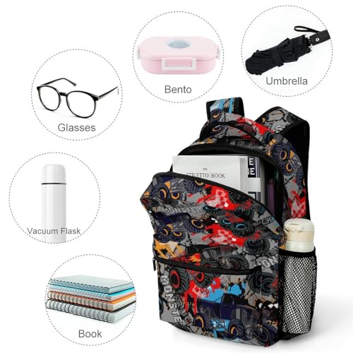 Monster Truck Kids Backpacks for Girls Boys Teenager,BookBags Back to School Bag,Lightweight Travel Daypack Laptop Backpack,Elementary Primary Middle School Bags for Age 6-12 6
