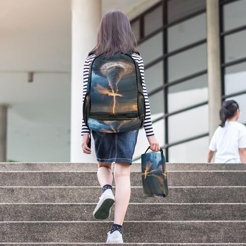 HOT ! Grey Lightning Tornado Backpack with Lunch Bag, School Travel Backpack for Teens Boys Girls Backpacks Set