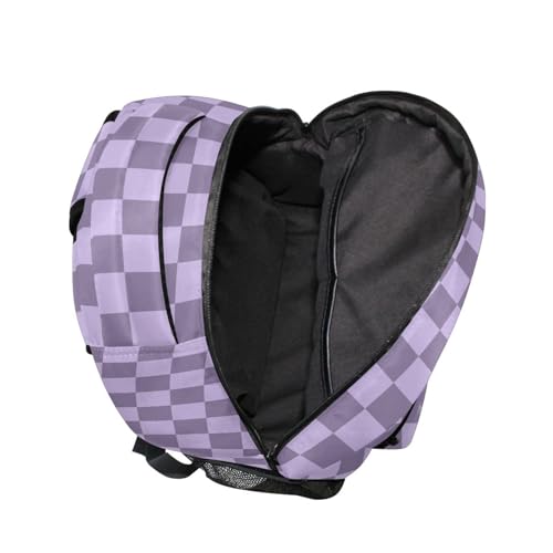 Purple Grey Checkerboard Backpack Lightweight School Bags Boys Girls Bookbag Kids Travel Rucksack 1