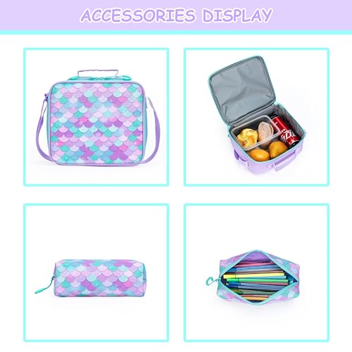 Girls 3 in 1 Rolling Backpack for School Girls Backpack with Wheels Girls Backpack with Lunch Box Set Kids Suitcase for Girls Elementary School Roller Bookbag Kids Travel bag with Wheels 6