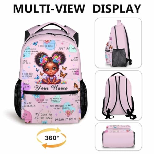 HOT ! Custom Backpack Gift for Girls, African Girls Bookbag with Name for Kids Kindergarten Preschool Primary, 17 Inch Lightweight Personalized Backpacks for School