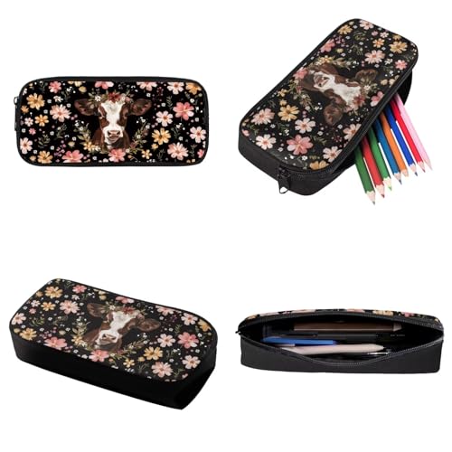 HOT ! Vintage Floral Cow Print Kids Backpack Set with Lunch Box Pencil Case, 3 PCS Lightweight Schookbag for Girls Boys, Waterproof Elementary Student Bookbag for Kindergarten or Daycare