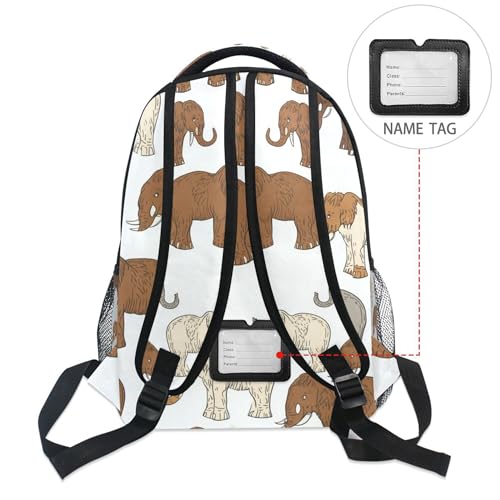 Brown White Mammoth Backpack Laptop Tablet Travel School Backpack with Name Tag for Kids Boys Girls 5