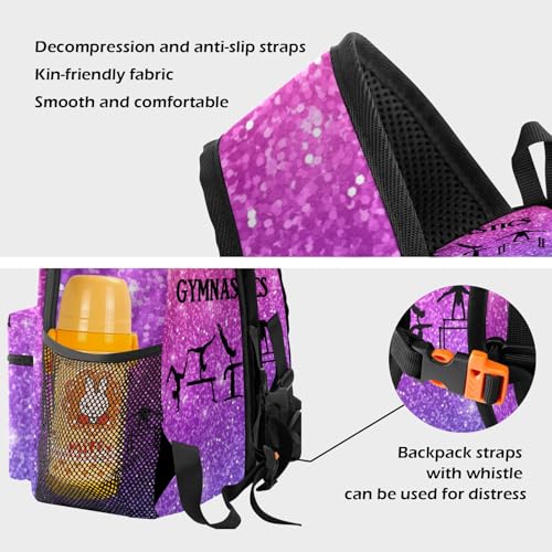 Pink Violet Glitter Gymnastics Personalized School Backpack for Kid-Boy/Girl Toddler Daypack Kindergarten Travel Bookbag, Option 17, K10255 4
