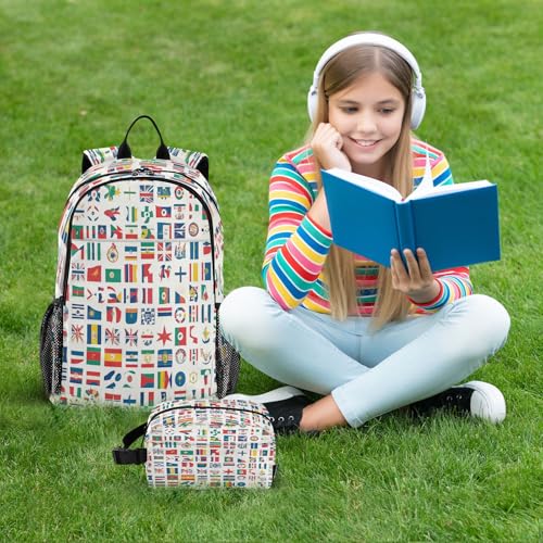 Kids Backpack Flags From Around The World Boys Girls School Backpack with Lunch Bag Bookbag Set for Elementary Middle School Teens 3