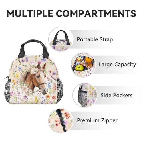 School Backpack with Lunch Box Set for Kids, 3Pcs Horse Backpacks Matching Combo for Girls, Cute Bookbag and Pencil Pouch Bundle for Elementary 5