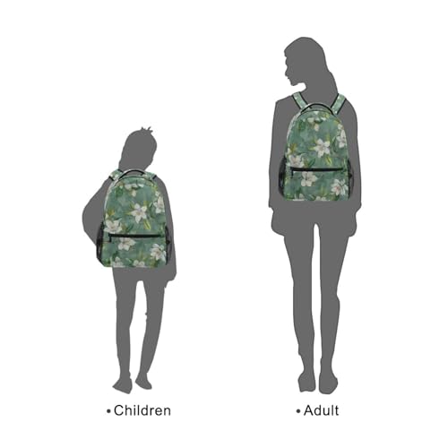 ALAZA White Flower Green Leaves Backpacks for Girls Boys School Backpack Kids Bookbag 3rd 4th 5th Grade Elementary Students Daypacks Travel Laptop Shoulder Bag 3