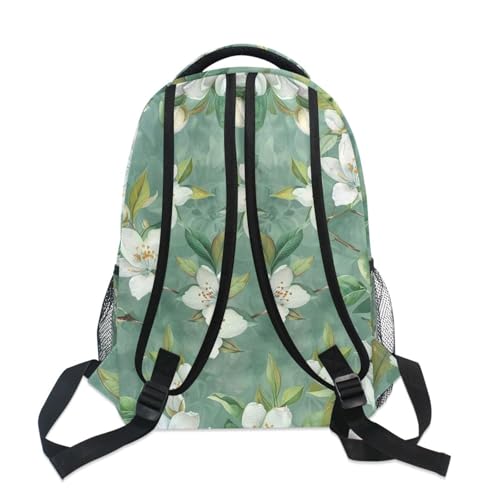 ALAZA White Flower Green Leaves Backpacks for Girls Boys School Backpack Kids Bookbag 3rd 4th 5th Grade Elementary Students Daypacks Travel Laptop Shoulder Bag 4