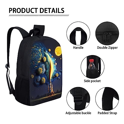 Kids School Backpack Art Oil Painting Book Bags School Bag Bookbag for Teen Youth College Students,Moon Blue Rose Rocket 3