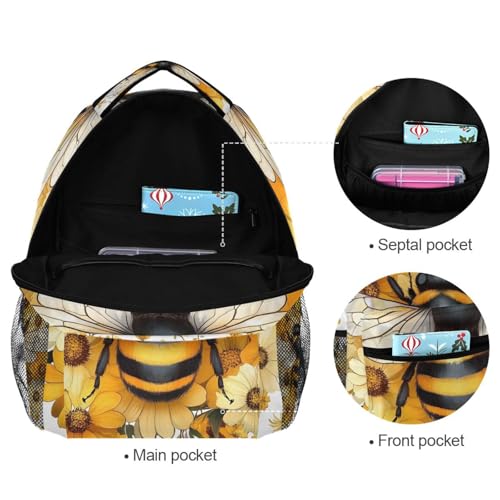 ALAZA Yellow Daisy Bee Bumblebees Backpacks for Girls Boys Elementary School Bag Kids Bookbag Personalized Travel Daypack 3rd 4th 5th Grade Rucksack 16in Laptop Back Pack 6