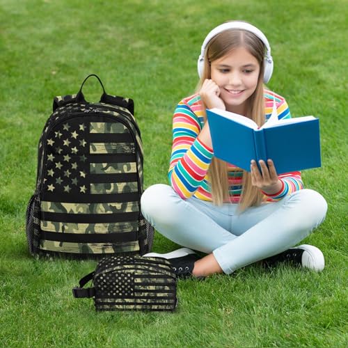 American Flag with Green Camo Backpack Set for Kids Girls Boys Elementary Middle School Bags with Lunch Bag 1