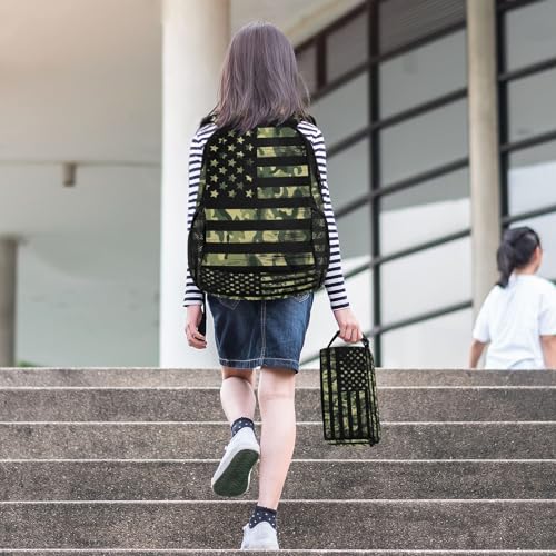 American Flag with Green Camo Backpack Set for Kids Girls Boys Elementary Middle School Bags with Lunch Bag 7
