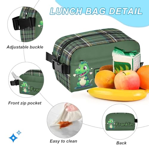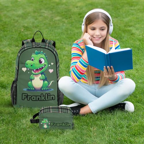 Custom Green Little Dinosaur Backpack for Kids Personalized Junior High Elementary Bookbag Lightweight Backpack with Lunch Box for Teens Kids Boys Girls 4